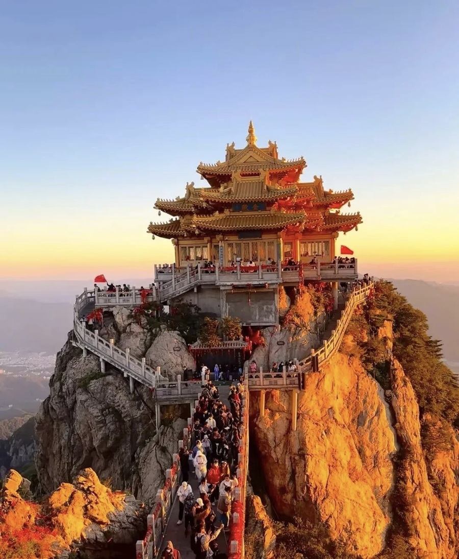 解锁老君山冬日限定雪景,目之所及皆为银装素裹的浪漫;在山顶金鼎静候日出东方、目送日落熔金,定格绝美光影;