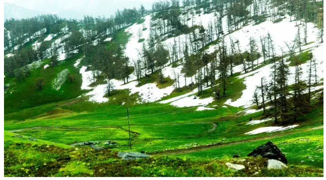 此时正值草原上花开的季节,黄色的是花,绿色的是草,墨绿的是树林,白色的雪山,这不就是一幅画么!