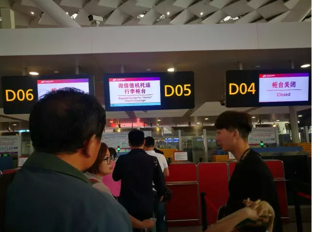 因为使用微信办理了值机信息,就不用去领登机卡,直接找到微信办理口行李托运